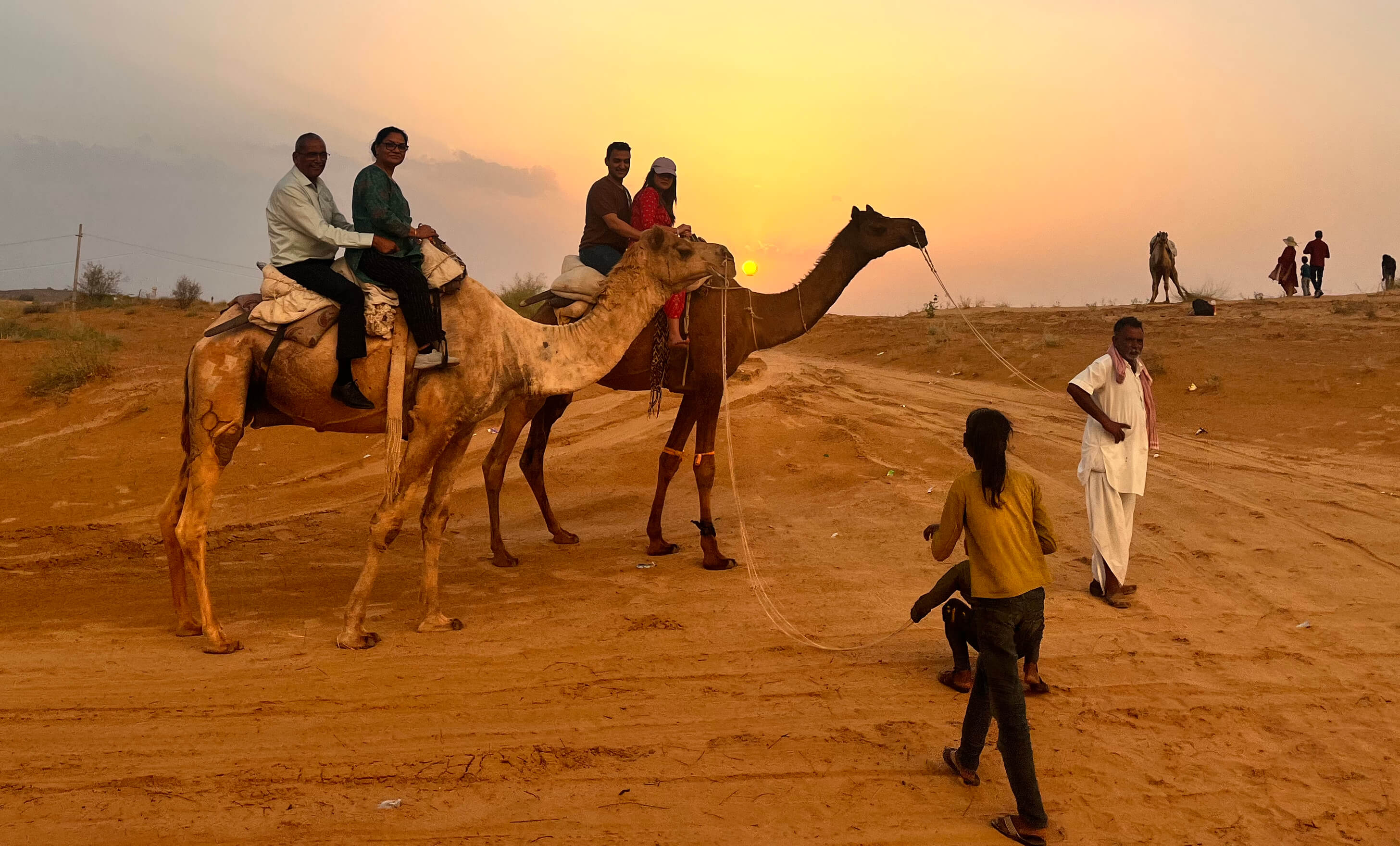 We recommend comfortable, breathable clothing. During daytime, light cotton clothes, sunglasses, hats, and sunscreen are advisable. For evening and overnight stays, bring a light jacket or shawl as desert temperatures can drop after sunset. Closed shoes are best for walking in sand. We also provide traditional Rajasthani attire for photos!